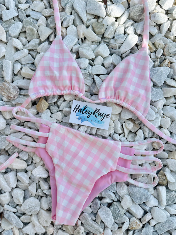 Santa Monica is extremely limited Girly + the cutest pink and white gingham Reversible to Light Pink Pictured: The Hadley Bottom
